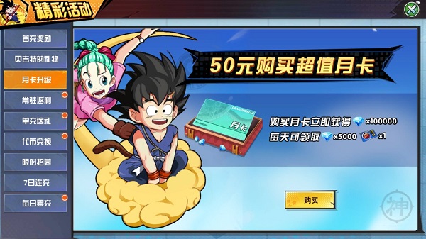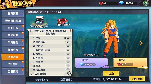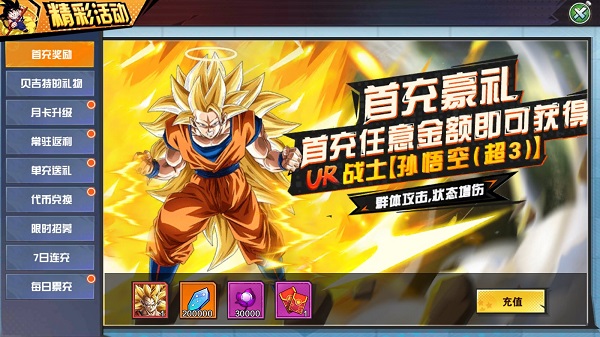 首充任意金额即可获得UR战士【孙悟空(超3)】