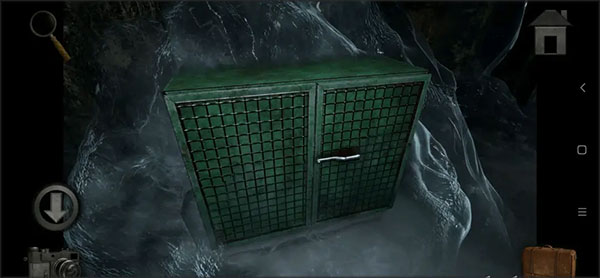 4、径直朝里走,进入杂货间,取走架子上的水管。接着走到更里面,点击墙上的铁箱,通过挪动上面的方块,让左边的蓝色光点移至右边的锁上,完成操作后,拿走铁箱里的钥匙。