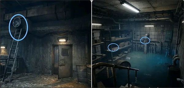 7、走进火车站,把梯子架在左边,取下通风管道上的风扇叶片。随后前往有积水的杂物间,利用胶鞋(操作方法为点击胶鞋后再点击货架)获取货架上的单向扳手。紧接着,使用管钳拧下右边的水管3。