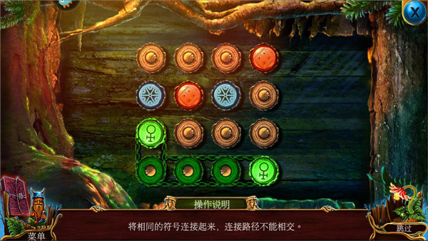 4、按照操作提示,将相同符号连接起来,同时要确保连接路径不相交,完成这个小游戏后,大门就会打开。