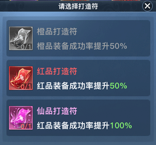 在打造时加可以加入打造符,可提高对应品质装备打造的成功率!