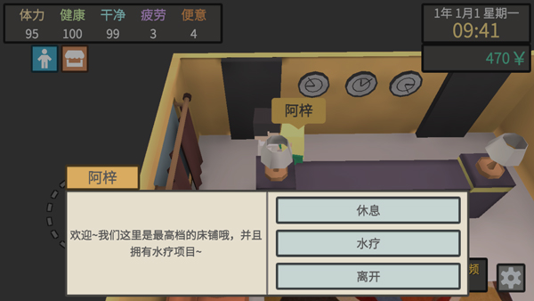 在出生地,能洗澡、上厕所。不过玩泥巴和乞讨相关的 bug 还没修好。当你离开这个地方,得记住回去时的模样,不然就会迷路。接着去距离最近的超市做兼职,兼职结束后前往那个公园。公园里有三个长椅,先别着急,那儿有个垃圾桶,翻垃圾很可能找到薯片。之后呢,歇一歇,积攒到 100 点“奥利给”,这样就能方便地释放“奥利给”啦。然后返回出生地,释放“奥利给”并洗澡,接着重复这些步骤。要是体力不够,就把超市的工作任务拉满,之后再去休息会儿,接着继续工作。记住,店员工作达到 300 点、累计到 1500 点时就去餐厅,就这样反复循环。