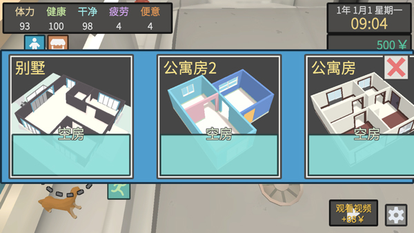 游戏开始,首先前往餐厅当厨师,接着吃顿饭之后再继续工作。随后回到平房,通过看广告赚钱来积攒获取以下这些东西。当然,也能够选择继续去做厨师(之所以要看广告还继续干厨师,是为了提升厨艺,这在后续会用到)