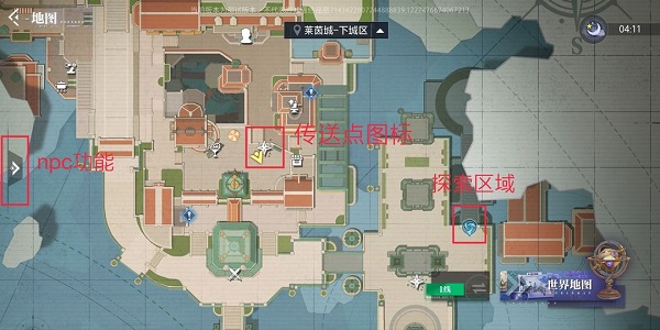 ③ 右上角打开地图,右下角打开世界地图,点击任意地图即可传送,一些探索区域传送点需要手动激活哦。