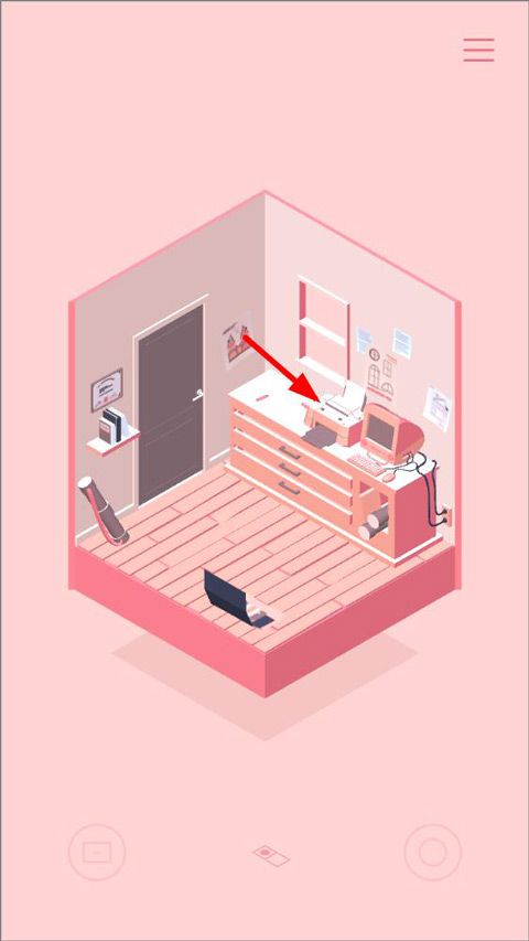 12、沿着楼梯往下走,来到下图所示的房间,点击柜子上的打印机,接着点击打印机上正在闪烁的按钮,随后点击打印出的文件,从而获取文件,要留意文件左上角的图案。