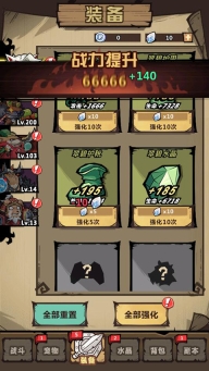 4、全部升级完成后我们点击装备图标,点击全部强化来提升装备属性