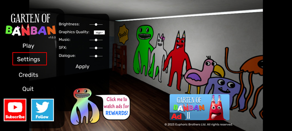 2、第一步,可点击“settings”打开设置,对游戏画质、音效等进行调整。