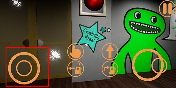 4、该游戏采用横屏操作模式,在手机屏幕右侧进行移动方向的操作,而手指点击执行的是互动功能。