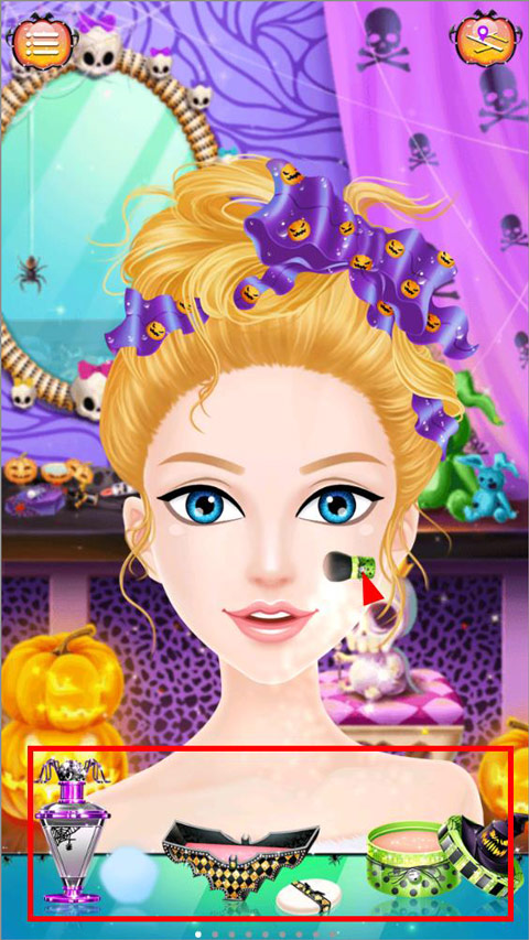 4、点击下方的化妆品,打造属于自己的万圣节妆容,无论是夸张、搞怪,还是惊悚、可爱,都由玩家自由决定。