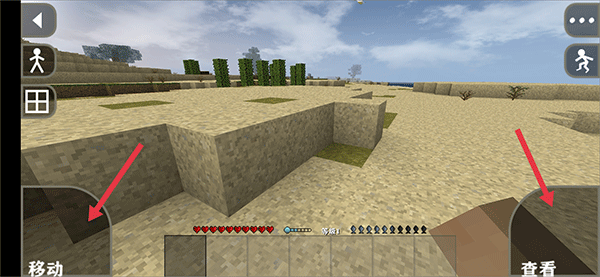 6、在游戏中,通过左下角移动按钮来操控角色的行走,右边查看为跳跃