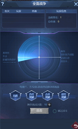 活动于每周三、周五的12点至20点开启。活动开启时,战舰BOSS初始为一级,成功击杀当前BOSS后,会刷新出下一等级的BOSS。下次活动开启时,BOSS将按照上次活动结束时的等级刷出。活动开启当天,玩家拥有10次挑战机会,若觉得机会不够,还能使用钻石购买更多挑战机会。参与该玩法,玩家有机会获得大量碳化钢、红装、金装精华以及金币,这些奖励可用于在装备商店购买装备。
