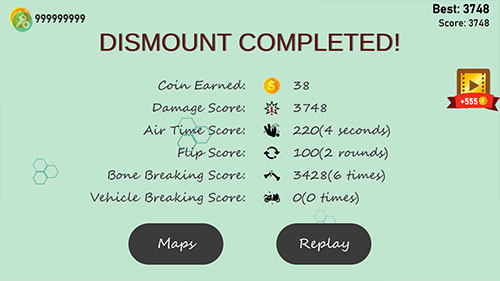 4、游戏最后会根据火柴人摔伤的程度来判断金币以及分数。