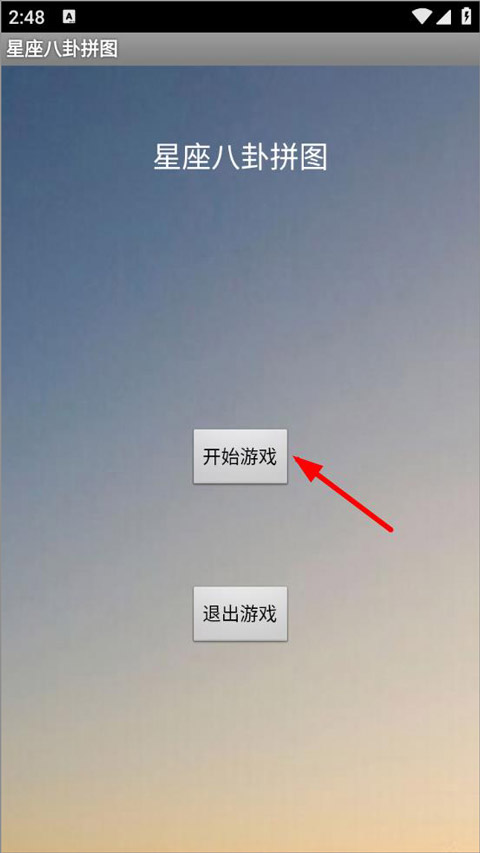 1. 开启星座八卦拼图游戏,进入游戏界面,玩家点击“开始游戏”按钮。