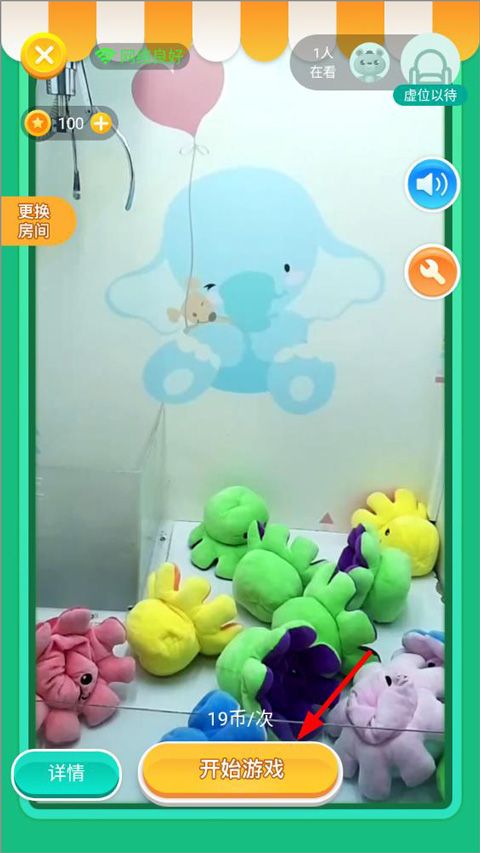 2、踏入娃娃机房间,玩家在该房间里能够切换不同的娃娃机,查看当前所选娃娃机的详细信息,随后点击开始游戏。
