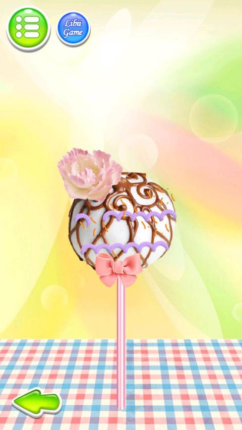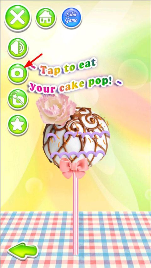 10、最美味的棒棒糖蛋糕终于大功告成啦!要是你不打算立刻享用它,不妨点击左上角的拍照按钮,将它保存到相册中,分享给亲朋好友。