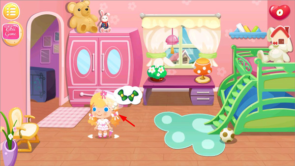 8、于卧室内点击糖糖,即可为她挑选并穿上你心仪的衣服。