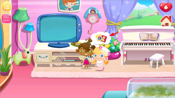 2、瞧,小糖糖在这儿呀,这会儿你能领着她在家里到处走走咯。可爱的糖糖可是大家心中的甜蜜宝贝,玩耍的时候也没忘记帮忙做家务呢。