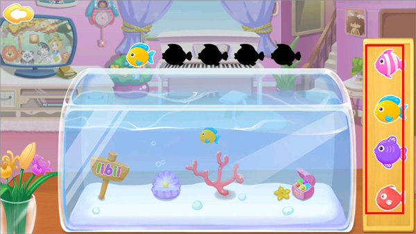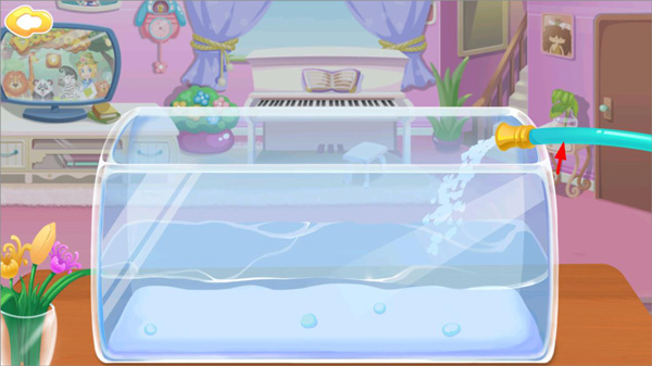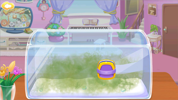 5、接着再陪哥哥玩一局钓鱼游戏,感觉鱼缸似乎好久都没清理过了,赶紧拿刷子把它擦干净,如此一来小鱼也能有个整洁的家啦。