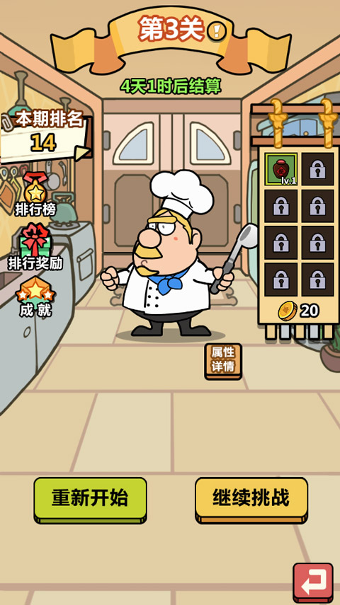 系统重置后,各位饲养员的闯关层数以及穿戴的厨具都将被重置。每周日22:00结算本周排名后,系统会自动执行重置操作。此外,饲养员们也能选择重新挑战,以此进行主动重置。需要注意的是,每周每层关卡在首次通关时,饲养员可获得厨神币奖励。