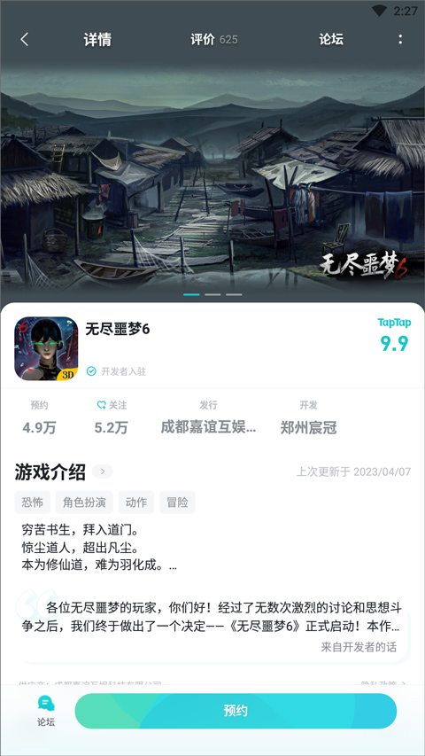 《无尽噩梦6》已于2023-04-07正式开启预约,上线时间官方尚未发布。