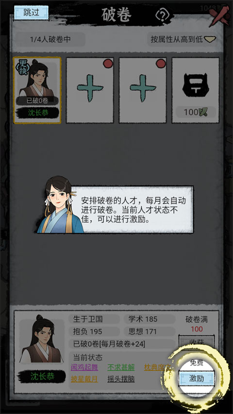 2、广纳门生 — 不同势力所看重的人才特质各有不同,有的侧重于学术造诣,有的着眼于思维能力,还有的关注抱负志向。身为一派之首,在不同发展阶段引入适配的门生,有助于提升学派的竞争力。