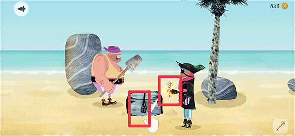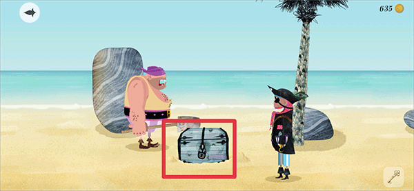 4、第二关里,玩家一开始操控角色走向红色x的位置,接着让手下把宝箱挖出来,挖出来的宝箱得用钥匙才能打开。