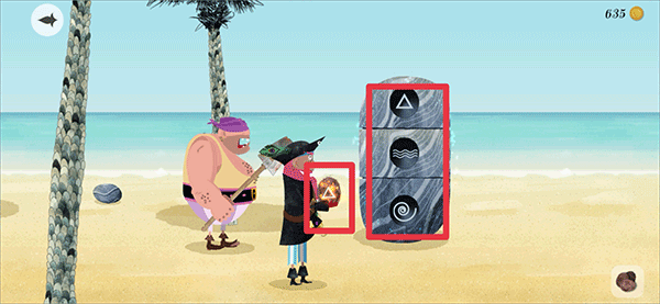 9、最后来到关卡末尾,左右滑动石头,使其形成与椰子对应的图形,然后把椰子放置在上面,就能完成本关,进入下一关。