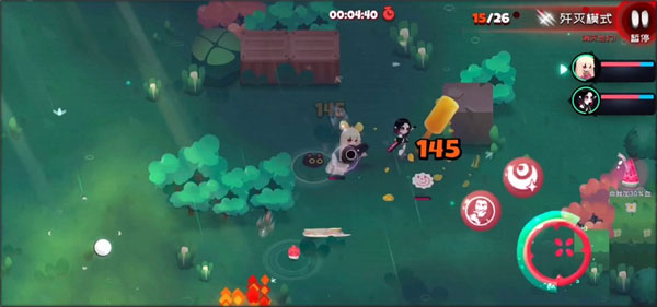 5、使用左边轮盘控制角色移动,右边按键进行攻击和释放技能。