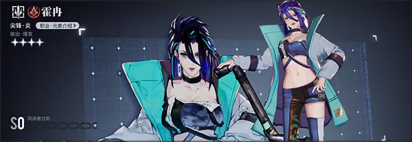 唯一一个四星级别的尖峰角色,属性为炎属性。是上面那位的下位替代,其输出和爆发能力都相当不错。但是相比于上面那位有着范围性伤害,该角色的整体单体输出能力则更为突出。所有的技能都是针对于单体输出能力的加强,能有效的对抗敌人的精英敌人和特定角色。