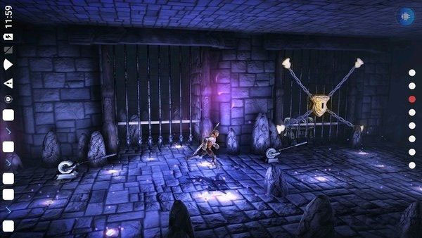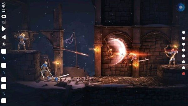 4、其整体操作与横板闯关游戏类似,左边控制移动方向,右边控制攻击、跳跃、冲刺等。