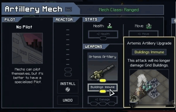 忠告之二:进行炮兵机甲( Artillery Mech)升级,抵消其对建筑的伤害。