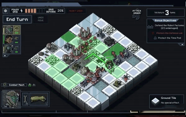 在《Into The Breach》的游戏机制里,应把HP当作一种为获取胜利能够消耗的资源。别怕让机甲承受较低伤害,为保护人类建筑,这么做绝对值得。而且,机甲死亡并非被摧毁,只是HP归零。要是有被动技能能治疗它们,它们会在无飞行员的情况下重启并继续作战。损失“机师”(Pilot)或许会让你心里不太好受,但损失一名机师并不会使游戏“结束”。即便任务失败,也能把一名机师传送至另一条时间线,保留所有经验与已解锁的能力。如此一来,“培养 - 保护 - 继承”王牌机师便成了核心战略。鉴于每次只允许传送回一名机师,小队中另外两位基本可视为“易耗品”。