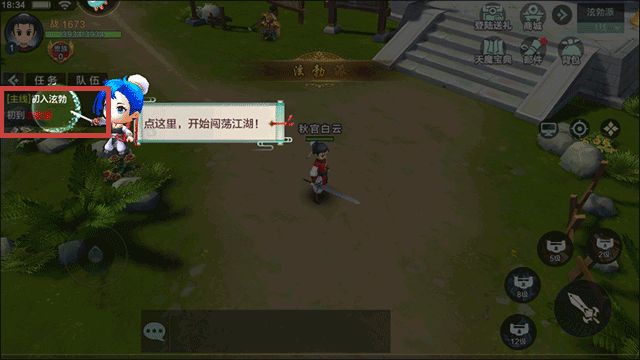 2、玩家身处主城时,即可开启接取任务的操作。仅需点击红色方框中的任务选项,便能实现自动寻路以及自动开战。