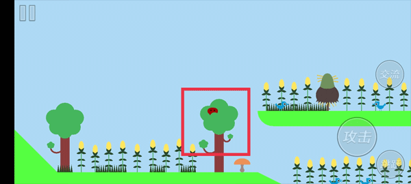 要是你想躲开游戏角色,防止被发现,能够借助“跳跃”按钮藏到树上。