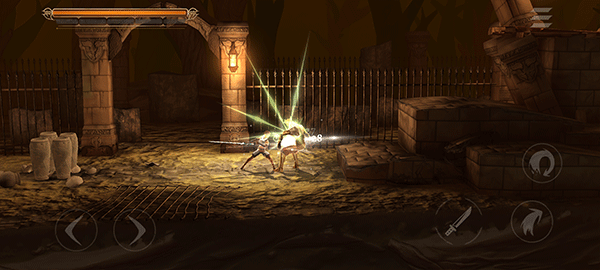 4、操作与横板闯关游戏类似,左边控制移动方向,右边控制攻击、跳跃、冲刺等;