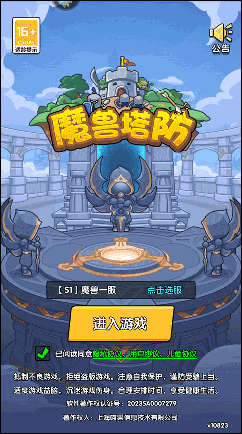 1. 运行游戏,在标题界面勾选“已阅读并同意隐私协议、用户协议、儿童协议”,然后找到并点击“进入游戏”选项。