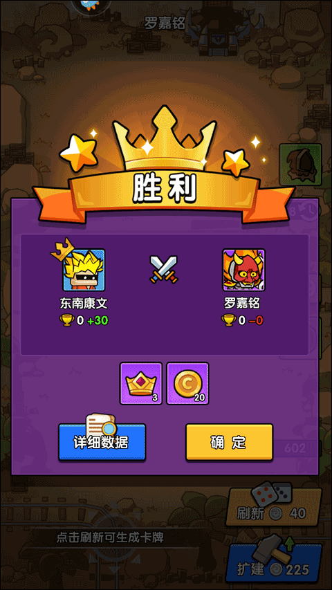 8、玩家最终取得胜利,在胜利界面找到“确定”按钮选项并点击,就能进入游戏待战界面。