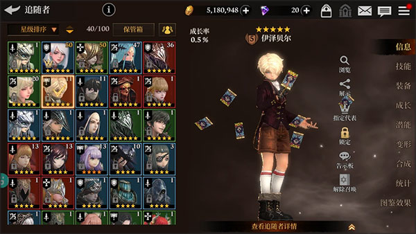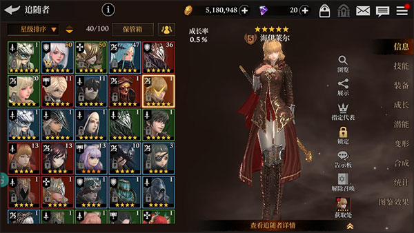 这个小队比较适合前期的副本,如果玩家想要挑战难度更高的副本,就需要启用五星以上的追随者,去应对各大副本的挑战。在游戏后期,核心输出角色是伊泽贝尔和海伊莱尔。拥有这两位追随者,玩家在后期战斗中会轻松不少。