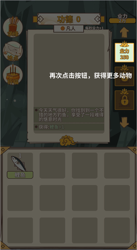1、玩家要从手中的鱼类里挑选一个适宜的放生地点来放生。由于放生鱼类的地点各异,对玩家功德的加成也不一样。此外,放生鱼类时还得留意是否存在其他物品会干扰放生效果。