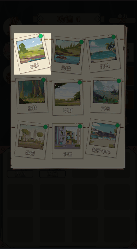 5、在这里,就可以选择小溪、河流、海边、丛林、草原、公园、小区、领养中心九大地点去放生了;