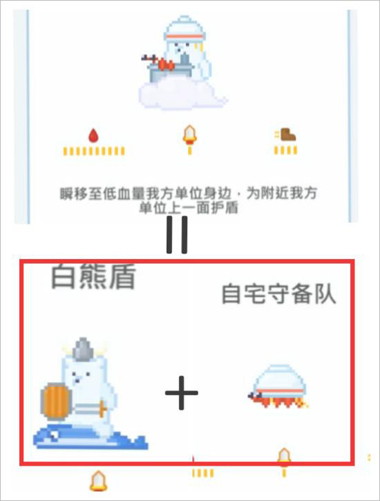 合体后会把面前的友方和敌人击退,到中间位置后分开。面板数值不高,但辅助能力强,能够帮助移动缓慢的友方快速前进,并且能够把敌人击退,可以代替道具推土机。