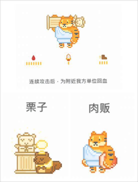 远程单位具备发射肉排的能力,肉排命中敌人后,能产生击飞与击退的效果,伤害颇为可观,控制能力也很强。不过,该远程单位移动速度较慢,射击速度同样迟缓,但相比其他远程单位,它更耐抗击打。此外,在不合体的状态下,单个肉排就拥有不错的抗打击能力。综合来看,十分推荐选择这个组合。