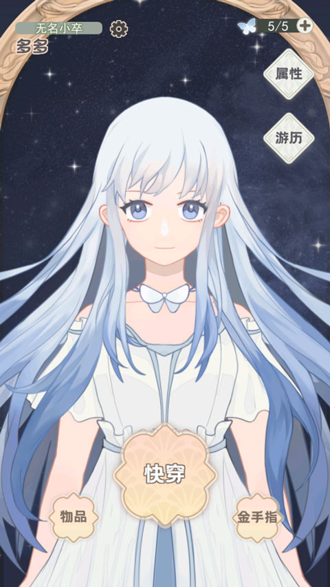 2、每次进入快穿游戏,都会置身于不同的世界设定之中,同时还会随机获得属性与天赋,点击即可开启游戏。