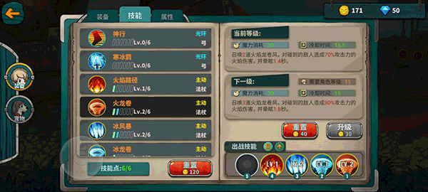 火龙卷-普攻俩下-冰龙卷-普攻俩下-地刺-普攻一下-火龙卷……一直打到90关,爬塔也无敌!