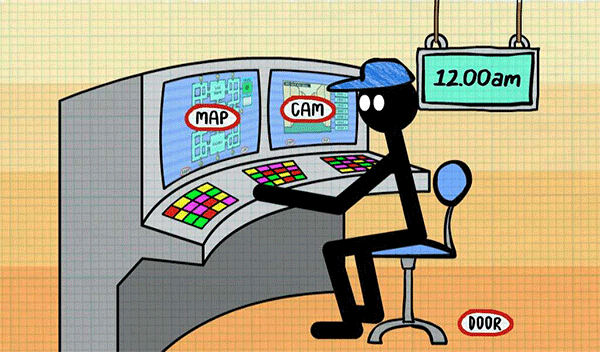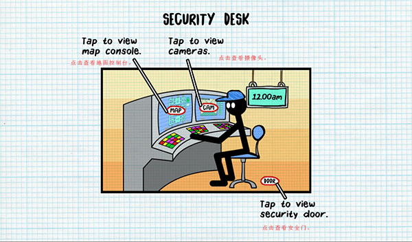 2、不管路线如何规划,你都得待在监控室内,留意恐怖火柴人的出现。