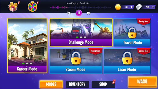 1、双击打开动力清洗模拟器游戏,根据需求选择模式;