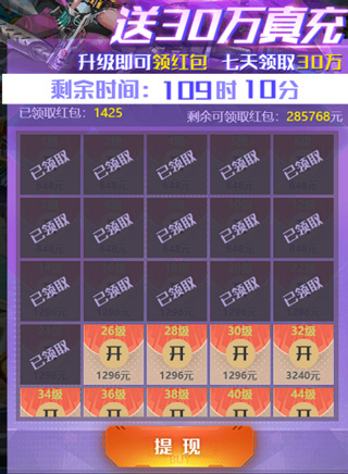 1、游戏开局即可参与全民冲级领30万真充活动,角色等级越高,能领取到的钱包余额也就越多。该活动在开服7天内都能参加,只要保持活跃状态,就算不充钱也能拥有舒适的游戏体验!