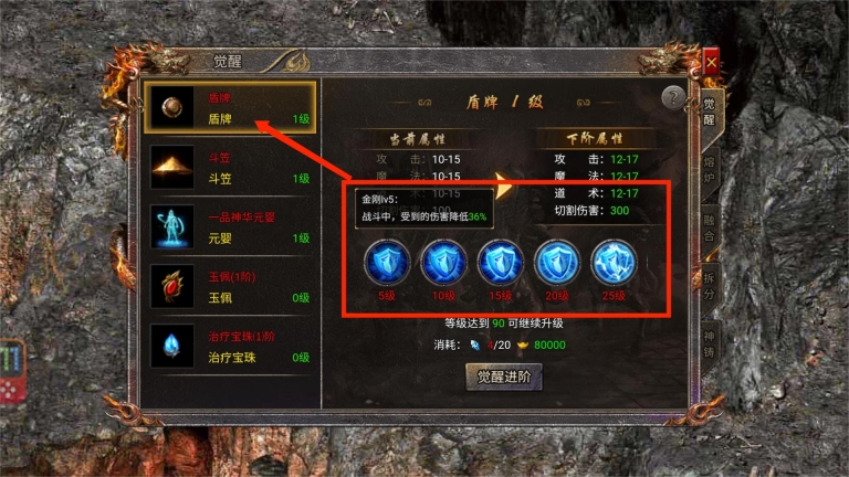 2、当大家佩戴盾牌后,不仅能获取大量防御与魔防属性加成,还可得到一定的攻击、魔法及道术属性增益。要是对盾牌进行觉醒,便能拥有金刚效果,在战斗时,所受伤害会按相应比例降低。此外,当盾牌与斗笠搭配达到指定等级,可激活套装效果,从而获得增加攻击伤害、减少物理伤害与魔法伤害的套装加成。