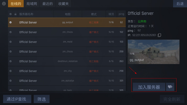 3、然后选择一个喜欢的模式,点击【加入服务器】即可。