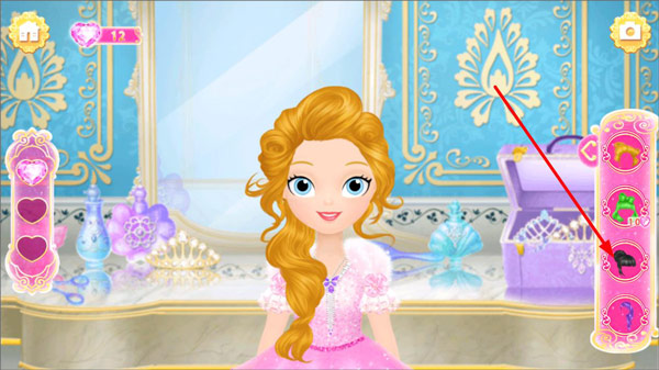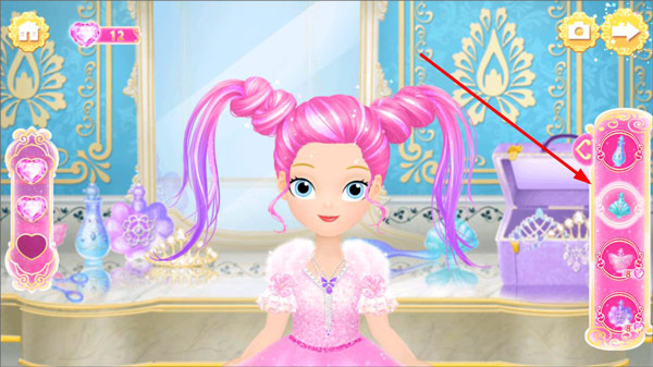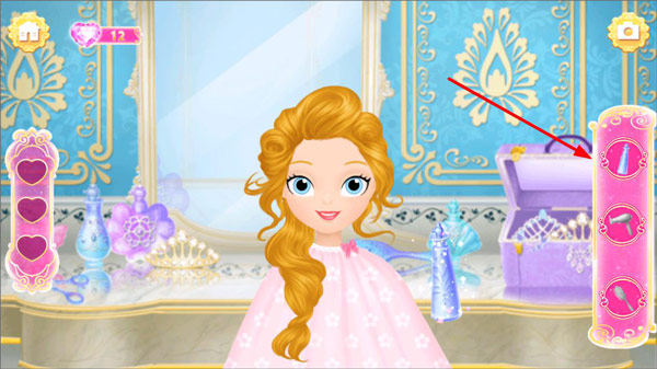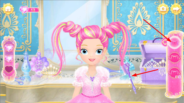 2、莉比小公主来到乔斯王子的国家后,首要之事便是打理发型,此刻她正等待着玩家出手相助。点击右侧的物品,助她梳理头发。
